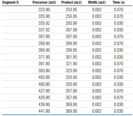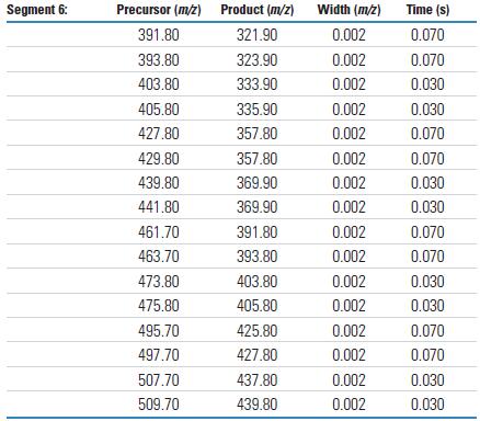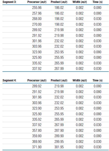 表 4. TSQ Quantum XLS H-SRM 分析時(shí)段