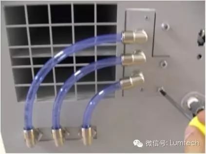 拆下過濾器外部連接管。向上按住街頭藍(lán)色部分,拔出連接管。