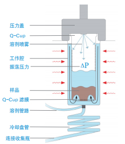 溶劑分別從Q-Cup的底部和頂部雙向自動加入,浸潤樣品。