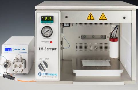 在過去幾十年中,MALDI質譜成像技術已被廣泛應用在生物標志物發現和藥物研發等多個領域。但是MALDI質譜成像的技術操作中,要獲得高質量、重復性好的質譜結果,并不容易。組織樣品基質的選擇和覆蓋十分關鍵,要盡可能的滿足組織切片上的蛋白無擴散或移位現象,基質與蛋白形成良好的共結晶,并不是十分容易的事情。然而,美國HTX technologies公司研發的