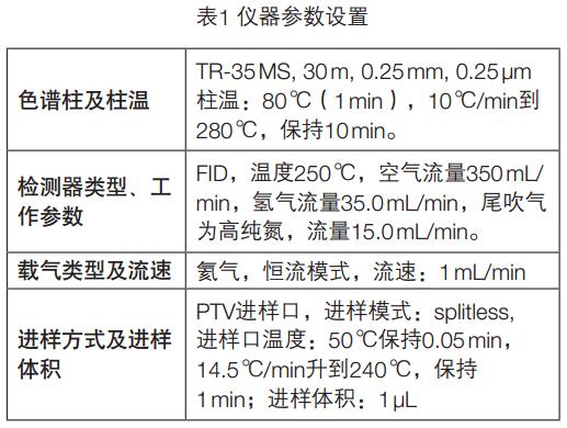 儀器: Trace 1310氣相色譜儀(ThermoFisher),配FID檢測器。
