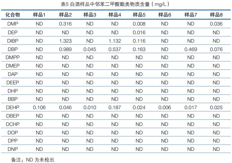 對市售8個白酒樣品中鄰苯二甲酸酯類物質的測定