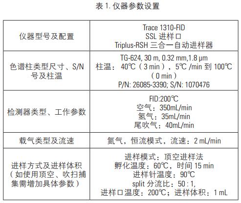 采用賽默飛世爾全新一代TRACE 1310 GC,結合Triplus-RSH三合一自動進樣器,本實驗使用其中頂空功能。其具有安裝快捷方便,同時測定靈敏度高、重復性好、結果可靠等優(yōu)點,本文完全滿足藥典中對溶劑殘留分析與檢測需要,同時可以輕松應對實驗室各種對VOC分析的要求。