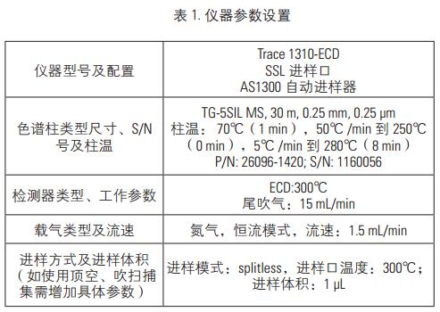 本實驗采用賽默飛世爾科技 GC-ECD 測定水產品中的菊酯, 樣品通過采用乙腈提取, C18 固相萃取柱凈化, 方法準確, 靈敏度高, 滿足檢測要求。