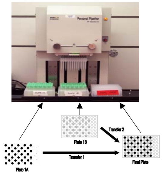 Figure 2. A semi-automated approach using the Apricot Personal Pipettor to transfer samples from microtainers to 96-well plates.