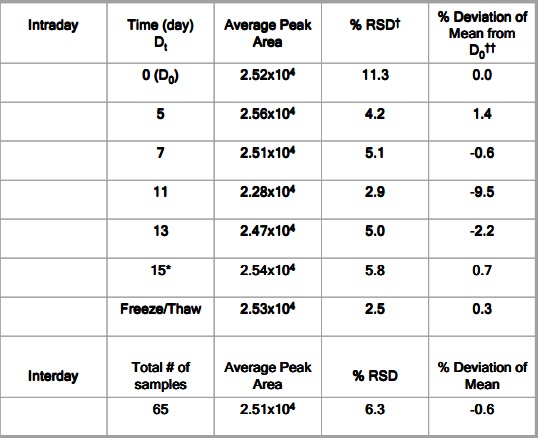 •Show that there are no compound stability or non-specific binding issues with the compounds tested by storing plasma samples in microtainers over long periods of time.