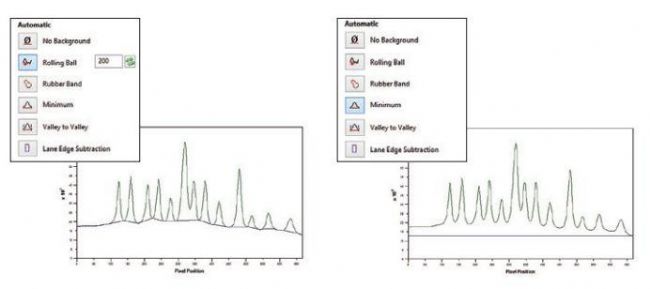 從自動分析開始,或者從創(chuàng)建泳道開始。工作流程步驟如下所示,可以在每個步驟進行微調(diào)。對于1D凝膠,高度開發(fā)的算法即使對扭曲的凝膠圖像上也能準確地檢測泳道和條帶。