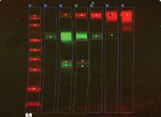 A.多重圖像顯示泳道和條帶邊界;B.強度圖顯示相對峰強度;C.從黑白圖查看每個通道的強度