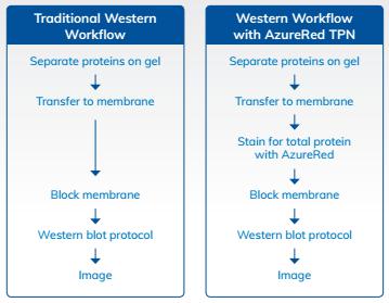 圖3.使用azurered進行的總蛋白質標準化很容易適合任何蛋白質印跡工作流程
