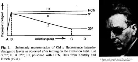 Kautsky最先發(fā)表科學(xué)論文描述葉綠素?zé)晒庹T導(dǎo)效應(yīng)(Kautsky,1931)