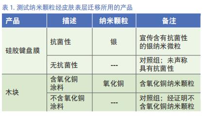 本項研究中,我們檢測了兩種不同的消費品:含銀硅膠鍵盤膜和噴涂了含氧化銅涂料的木塊(表 1)。為了評估這些產品上納米微粒的傳輸情況,我們結合使用了兩種抹布和合成汗水 2 。使用不同的抹布是為了最大程度地減少銀和銅的背景值:銀背景值較小的抹布用于檢測銀納米微粒,而另一張銅背景值較小的抹布則是檢測銅納米顆粒的更佳選擇。