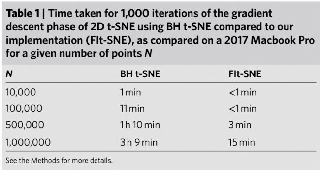 t-SNE是一種常見的scRNA-seq數據可視化工具,但對于大數據背景時適用有限。來自耶魯大學數據應用中心的研究人員發表了“Fast interpolation-based t-SNE for improved visualization of single-cell RNA-seq data”的研究報道。該研究大大加速了t-SNE分析速度,避免了對數據下采樣的需求,從而允許稀有細胞群的可視化。此外,研究人員基于一維t-SNE實現了針對scRNA-seq的熱圖樣式可視化,以同時可視化數千個基因的表達模式。