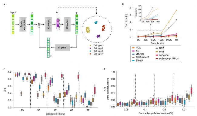 從單細胞組學數據中識別細胞類型是單細胞研究的重中之重。來自加州大學藥物化學系的研究人員發表題為“Scalable analysis of cell-type composition from single-cell transcriptomics using deep recurrent learning”的研究,提出了一種稱為scScope的,可擴展的,基于深度學習的方法。該方法可以從數百萬個嘈雜的單細胞基因表達譜中準確、快速地鑒定細胞類型組成。