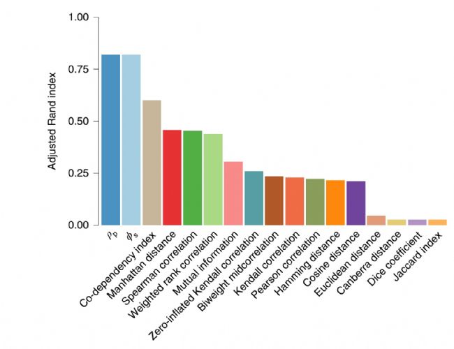 由于scRNA-seq獨特數據特性,從單細胞轉錄組學中鑒定基因-基因和細胞-細胞關系的最佳關聯方法仍不清楚。來自哥倫比亞大學邁克爾史密斯實驗室的研究人員發表題為“Evaluating measures of association for single-cell transcriptomics”的研究。該研究對17種關聯度量算法進行了大規模的評估,評價了它們重建細胞網絡的能力,相同類型的聚類細胞以及將細胞類型特異性轉錄與疾病聯系起來的能力。該研究表明,計算組成數據向量之間比例關系的比例度量方法,來描述兩個變量之間的相關性是跨數據集和測試的最佳表現方法。該分析為單細胞轉錄組學中的基因和細胞網絡分析提供了指導。