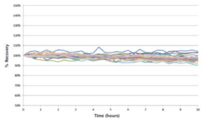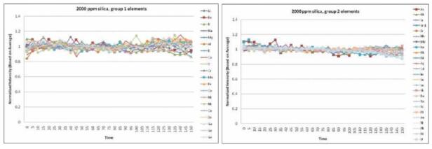 穩定性:連續進樣分析多元素加標濃度為100ppt 的硅樣品溶液(硅濃度為2000ppm)