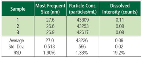 SP-ICP-MS技術具有高靈敏度、易操作、分析速度快的特點,納米粒子引入等離子體中被完全電離,隨后離子被質譜儀檢測,信號強度與顆粒尺寸有關。因此SP-ICP-MS可為用戶提供顆粒濃度(顆/mL),尺寸大小和尺寸分布。為確保一次只檢測一個單顆粒,必須稀釋樣品以實現分辨的目的。這就要求質譜儀必須能夠有很快的測量速度,以確保能夠檢測到在50nm納米顆粒的瞬時信號(該信號變化的平均時間為300~500μs)。珀金埃爾默NexION系列半導體專用ICP-MS單顆粒操作模式能夠采集連續數據,無需設置定位時間,每秒鐘獲取高達100 000個數據點。結合納米顆粒分析軟件模塊,可以實現單顆粒納米顆粒的準確分析。