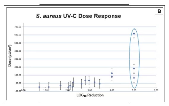 結果發現≤60秒的短時間UV-C暴露(265nm或275nm)足以使金黃色葡萄球菌減少4Log₁₀。