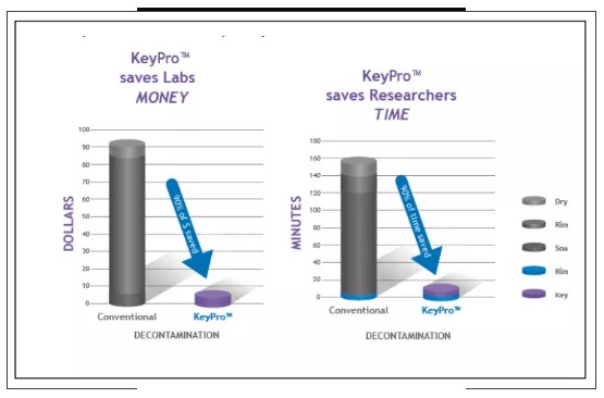儀器采用 275nm 和 365nm 的雙波長協同作用, 5min去除RNase,細菌,病毒,真菌等的污染,無殘留,免沖洗,可節省高達 90%的化學去污時間和成本。