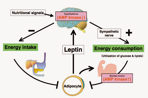 Leptin具有廣泛的生物學效應,其中較重要的是作用于下丘腦的代謝調節中樞,發揮抑制食欲,減少能量攝取,增加能量消耗,抑制脂肪合成的作用。