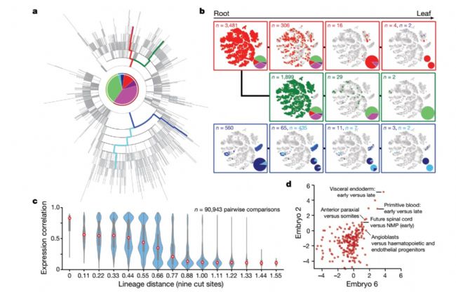 圖1 小鼠胚胎發育過程單細胞譜系重建結果