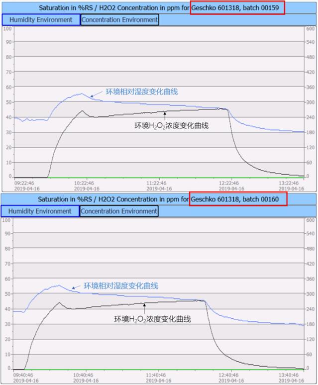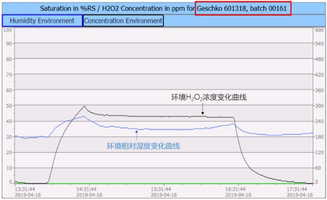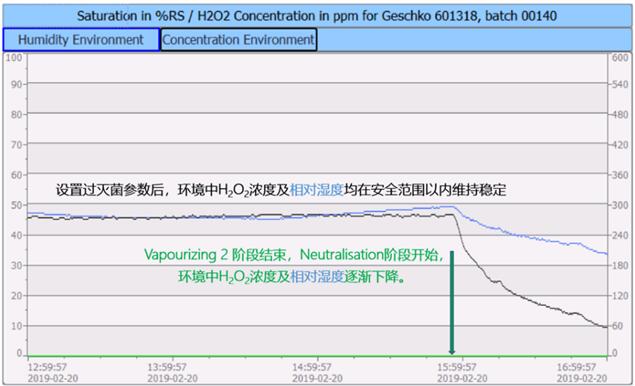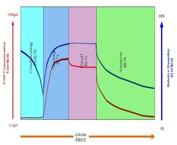 圖2.實現變速注入后滅菌周期中環境VHP濃度及相對濕度變化