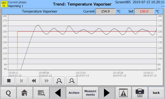 德國PEA的VHP滅菌技術采用最新的第三代干法閃蒸工藝,在閃蒸的全過程,溫度可以設置在150℃以上,由西門子PLC精確控制閃蒸速率及閃蒸腔室的溫度。隨著過氧化氫溶液的注入,整個滅菌周期的閃蒸溫度維持動態變化,始終位于過氧化氫溶液的沸點以上,不僅可以實現過氧化氫溶液的快速、穩定汽化,更提高了對環境微生物的殺滅效率。