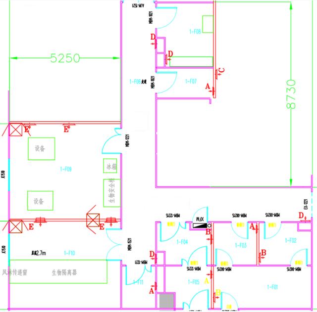 如下圖所示,為某細胞治療企業GMP車間待滅菌區域布局圖,該區域面積125㎡,體積約為325m³,根據車間體積大小及布局情況,設置滅菌程序進行滅菌。