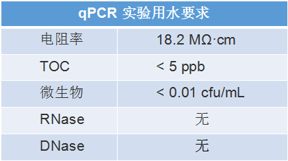 綜上,實時熒光定量PCR實驗推薦使用超純水,水質要求如下圖所示: