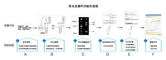 在實時熒光定量PCR實驗中,可以分為樣本采集,RNA提取,RNA質量鑒定,反轉錄及數據分析幾個步驟,在進行引物、模板的稀釋,試劑的配制和補足反應體系時都會用到水,水質量的好壞直接影響最終數據分析的結果。