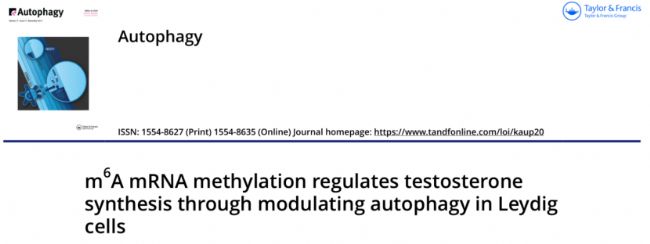 2020年1月31日,m6A調節睪酮合成一文發表在Autophagy (IF=11.059)期刊上,該文章采用多組學聯合應用技術檢測睪丸間質細胞(LCs)m6A甲基化修飾,這項研究揭示m6A 甲基化在LCs中調節睪酮合成中的作用,通過利用m6A 甲基化研究作為無精子癥和少精子癥的治療靶點,為新的治療策略提供了方向。