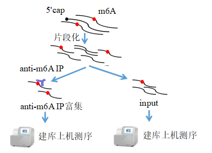 利用m6A特異性抗體,通過免疫共沉淀技術(MeRIP方法)特異性富集發生甲基化修飾的RNA,與不處理組(Input)做對比,對m6A修飾進行高通量測序和peak峰定位。