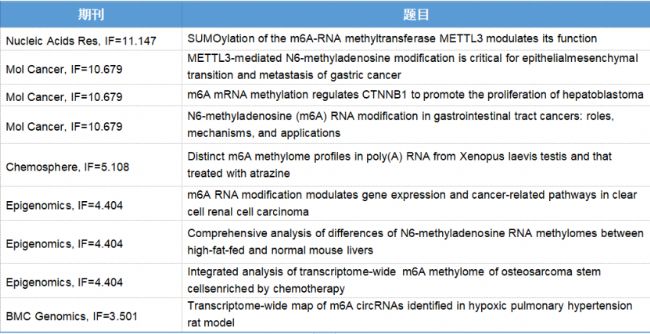 *云序生物作為國內最早做m6A的科研平臺,至今用戶已發表10多篇m6A相關文章,其中多篇影響因子超過10分。