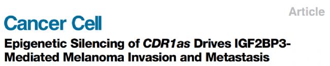 近期國際頂級雜志Cancer Cell上再次刊登了關于環狀RNA研究,來自瓦倫西亞大學等機構的科學家們通過研究開發了一種有效阻斷黑色素瘤發生轉移的新方法;文章中,研究人員發現環狀RNA-CDR1as可結合IGF2BP3,CDR1as表達降低后可釋放IGF2BP3,改變一些靶基因的表達狀態,參與黑色素瘤的遷移侵襲及GPX4藥物敏感性,環狀RNA-CDR1as有望成為新型癌癥生物標志物從而幫助開發新型抗癌療法。下面小編和大家一起解讀這篇23分的高分文章。