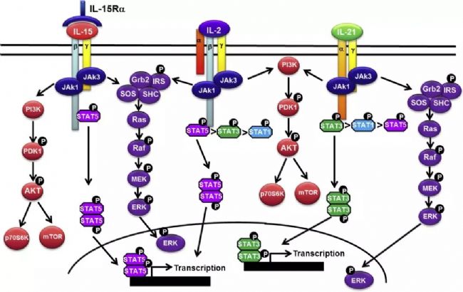 IL-2家族IL-2、IL-15和IL-21的信號轉導[5]