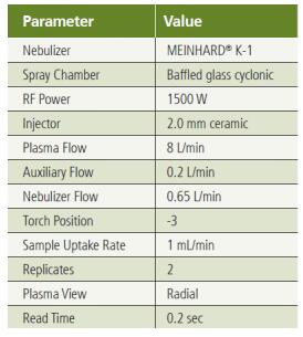 表 2. Avio 200 ICP-OES 儀器參數和實驗條件