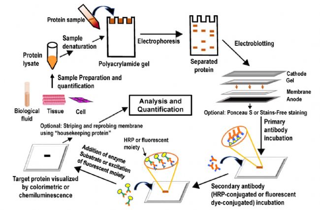 Western Blot 是一種用于檢測蛋白質以及蛋白質翻譯后修飾的常用方法,可以對簡單或復雜生物樣品中的目標蛋白質進行半定量或定量分析。其操作步驟包括: