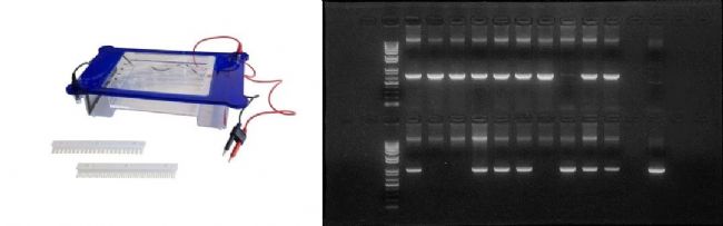 ▲瓊脂糖電泳儀及實驗圖片