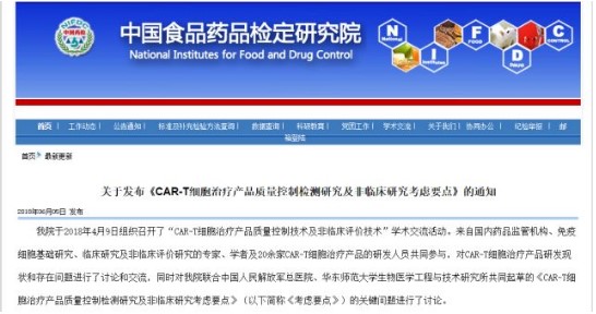 2018年6月5日,中國食品藥品檢定研究院發布了《