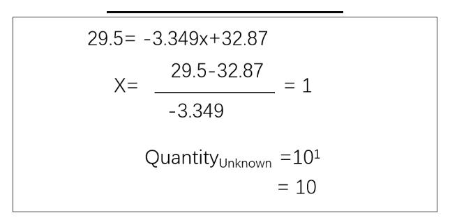 從圖1可以發現,當模板起始濃度越大時,熒光達到閾值的循環數越少,即Cq值越小。反之,模板起始濃度越小時,Cq值越大。起始模板量的Log值與循環數Cq值呈線性關系,通過已知起始拷貝數的標準品作出標準曲線,即可確定未知待測樣本中目的基因的量。