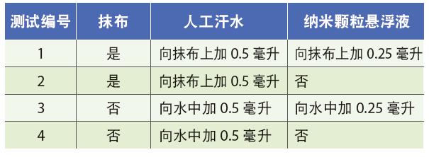 檢查抹布上回收和提取的納米顆粒,進行四次測試,如表2所述。這些測試均使用的是30納米的銀納米顆粒(瑞典Cline 提供)和30-50納米的氧化銅納米顆粒(德國PlasmaChem公司提供)。