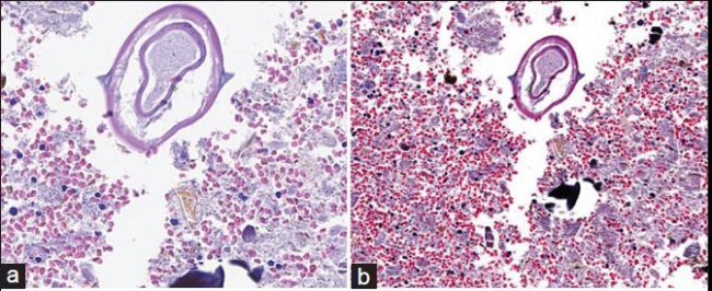 圖1:使用相似的×20物鏡顯示闌尾中的蟯蟲圖像,但傳感器像素大小不同。