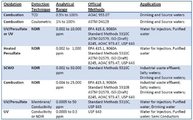 多年來,許多使用各種氧化技術的TOC分析儀已被不同的制造商介紹。這些不同的氧化技術發展起來是為了開發特定的細分市場。例如,UV或UV/過硫酸鹽氧化方法的使用被確定為最適合于制藥和生物技術行業。這主要是由于低的儀器背景和大樣品量,可以用于測試TOC含量。