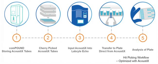 2018年,阿斯利康、Brooks 、Labcyte和Titian合作發(fā)布了新的“AcoustiX樣本管”和相關(guān)工作流程,特殊的聲波AcoustiX樣本管面臨諸多自動(dòng)化存儲(chǔ)挑戰(zhàn)。近20年來(lái),SPT Labtech專注為化合物管理提供自動(dòng)化解決方案,其-20℃自動(dòng)化存儲(chǔ)系統(tǒng)comPOUND成功克服AcoustiX樣本管存儲(chǔ)難題,以氣動(dòng)式技術(shù)實(shí)現(xiàn)其自動(dòng)化存儲(chǔ)。