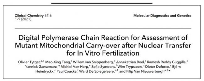 Leber遺傳性視神經病(LHON)最常見的母系遺傳性線粒體疾病,比利時根特大學生物系專家團利用數字PCR(dPCR)平臺對LHON相關m.11778 G>A突變位點進行檢測,并和NGS方法進行對比,探討數字PCR在mtDNA異質性定量中的適用性。研究成果發表在知名期刊《Clinical Chemistry》上。