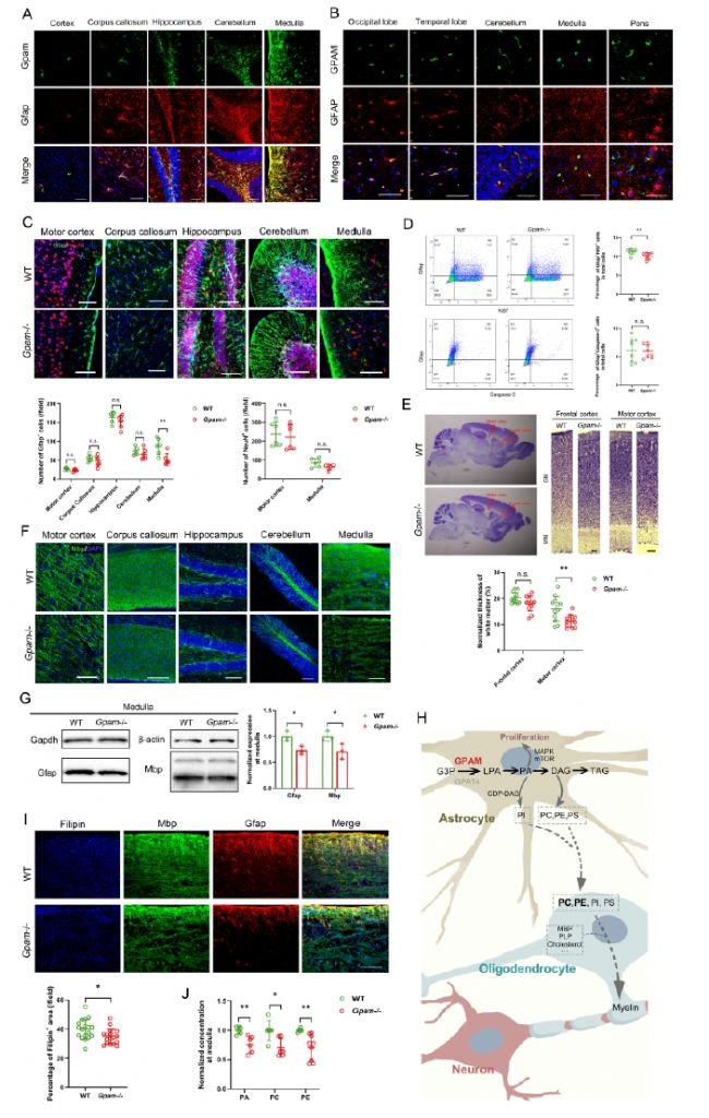 研究人員于是提出,GPAM基因在星形膠質細胞中參與脂質合成,并輸送給少突膠質細胞用于髓鞘形成。GPAM基因缺陷擾亂了星形膠質細胞的脂質代謝,導致星形膠質細胞增殖受抑制,并造成少突膠質細胞髓鞘形成所需的脂質含量不足,導致持久的脫髓鞘病變。