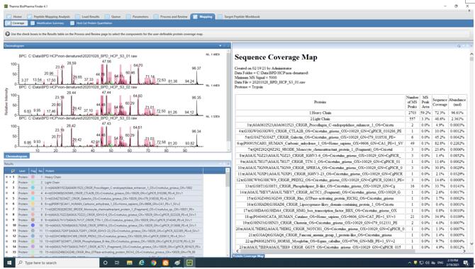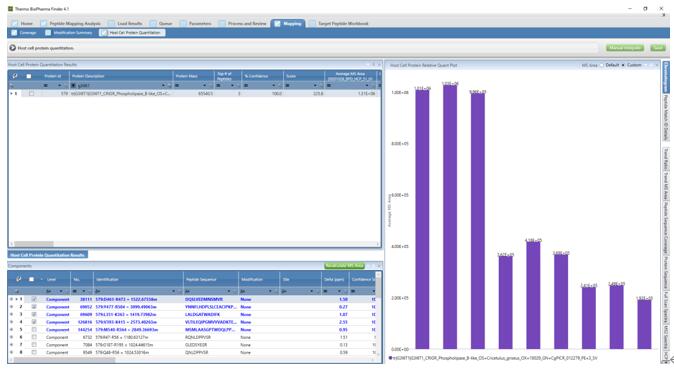 Biopharma Finder 4.1單一軟件解決方案,可同時提供目標(biāo)蛋白的肽圖分析結(jié)果及HCP的定性定量結(jié)果。