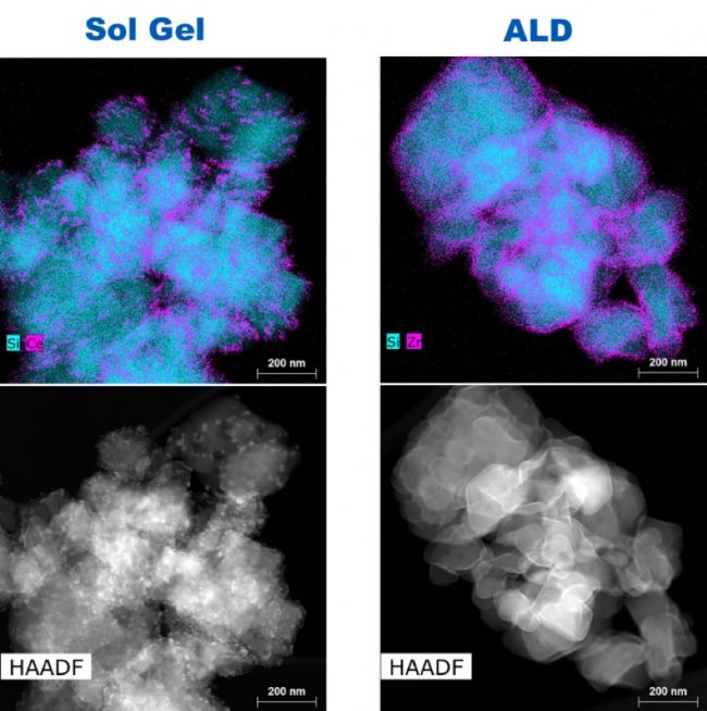 ALD 技術制備的薄膜更均勻(左:溶膠凝膠法;右:ALD)