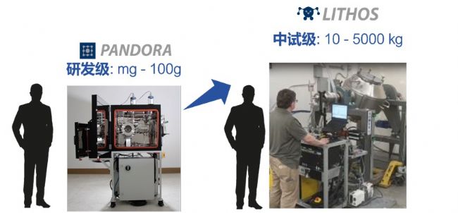 經過 P 系列驗證的工藝,可以通過與 Forge Nano 合作進行放大生產,最高可實現每日噸級的處理量。這一方式可以極大地減少粉末包覆的處理成本(<$1/kg,每日處理量噸級)。