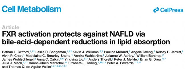 BethanL.Clifford, et al. FXR activation protects against NAFLD via bile-acid-dependent reductions in lipid absorption. Cell Metab.doi: 10.1016/j.cmet.2021.06.012.