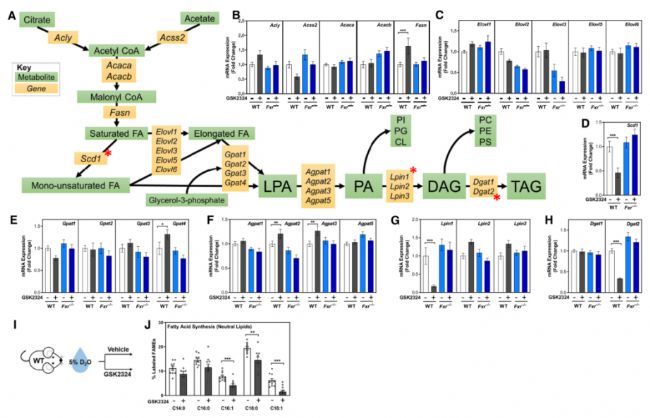 GSK2324選擇性降低脂肪酸和甘油三酯合成基因的表達